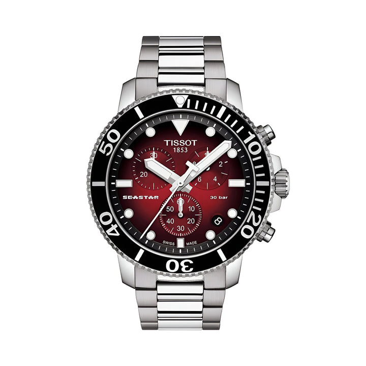 Tissot Seastar 1000 Chronograph Red Dial Silver Steel Strap Watch For Men - T120.417.11.421.00
