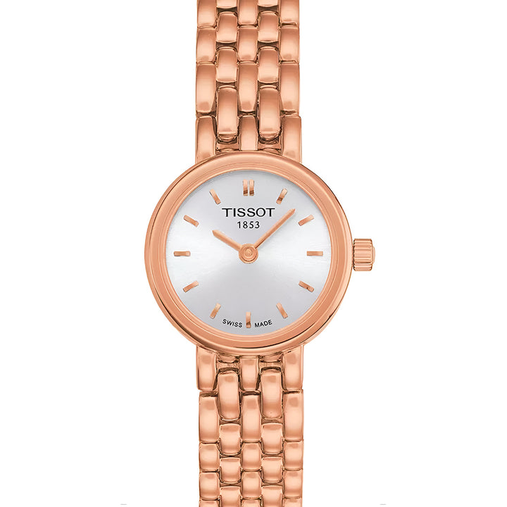Expertly crafted for the modern woman, the Tissot T Lady Lovely watch boasts a stunning silver dial and rose gold steel strap. With its elegant design and precise timekeeping, this timepiece is both stylish and functional. Elevate your look with this luxurious accessory.