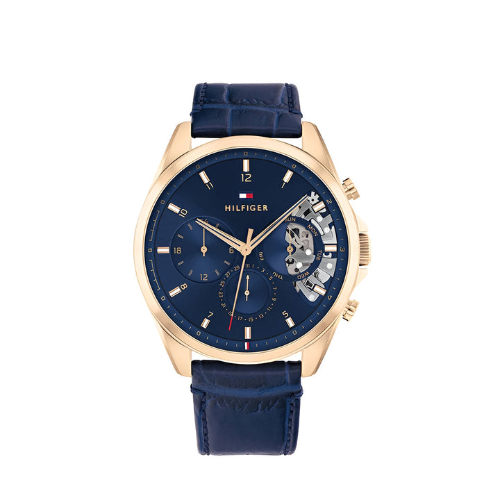 Tommy Hilfiger Baker Chronograph Quartz Blue Dial Blue Leather Strap Watch For Men - 1710451