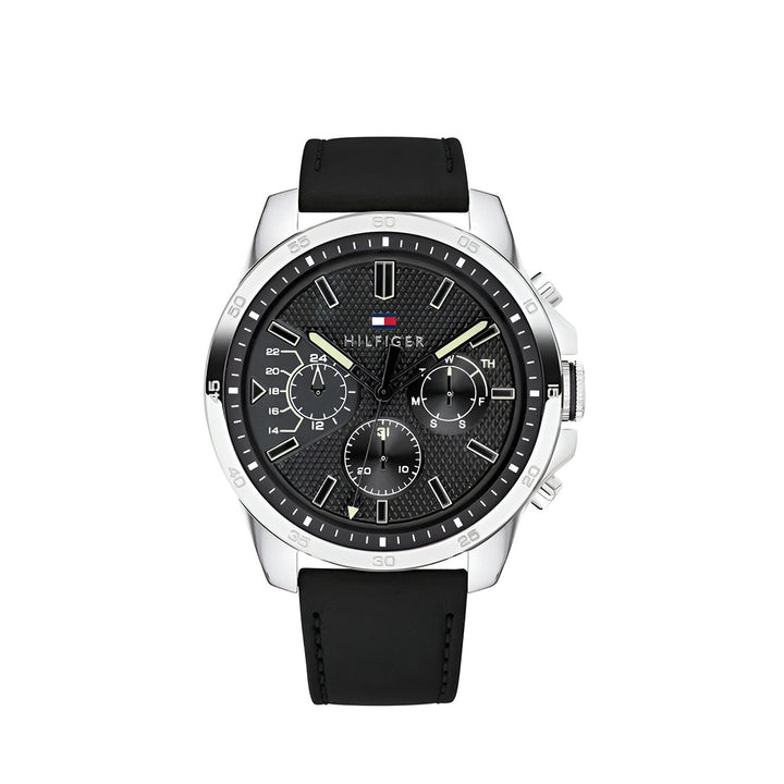 Tommy Hilfiger Decker Chronograph Black Dial Black Leather Strap Watch for Men - 1791563