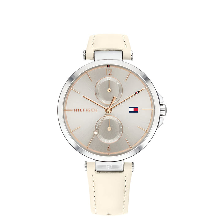 Tommy Hilfiger Gray Dial Leather Belt with Beige Color Watch For Women-1782123
