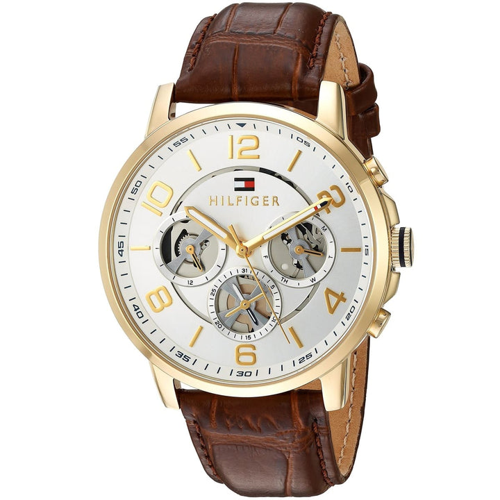 Tommy Hilfiger Men’s Quartz Gold-Tone Leather Strap 44mm Watch 1791291