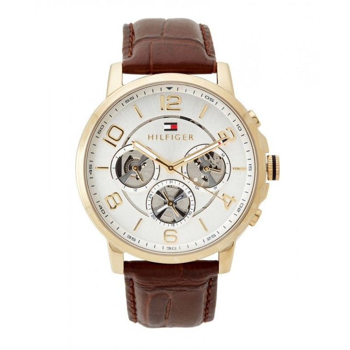 Tommy Hilfiger Keagan Quartz Silver Dial Brown Leather Strap Watch for Men - 1791291