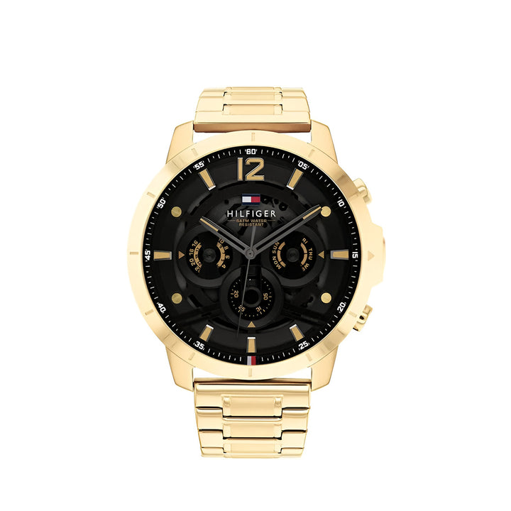 Tommy Hilfiger Luca Chronograph Black Dial Gold Steel Strap Watch For Men - 1710511