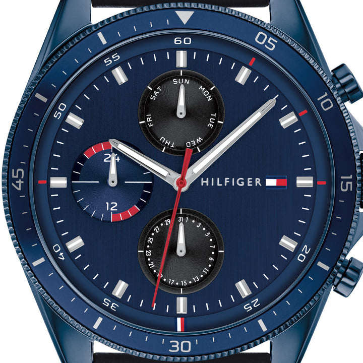 Tommy Hilfiger Parker Chronograph Quartz Blue Dial Blue Leather Strap Watch For Men - 1791839