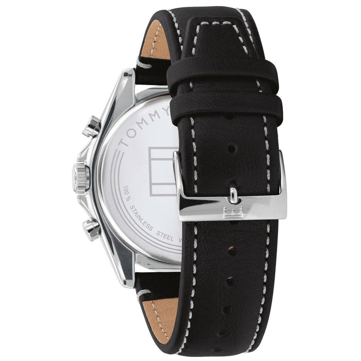 Tommy Hilfiger Parker Chronograph Quartz Grey Dial Black Leather Strap Watch For Men - 1791838