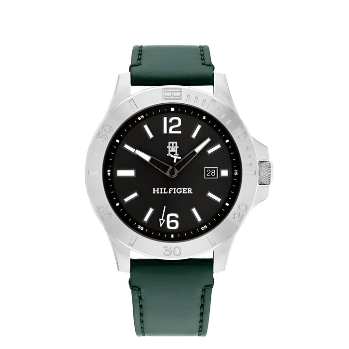 Tommy Hilfiger Quartz Green Leather Strap Black Dial 46mm Watch for Men-1710531