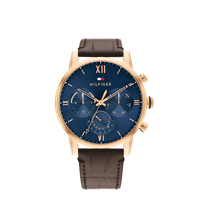 Tommy Hilfiger Sullivan Brown Leather Strap Blue Dial Chronograph Quartz Watch for Mens - 1791933
