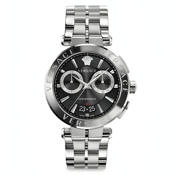 Versace Aion Chronograph Black Dial Silver Steel Strap Watch for Men - VBR080017