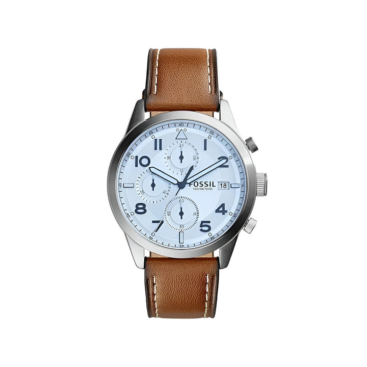 - Fossil Men’s Chronograph Quartz Leather Strap Silver Dial 44mm Watch FS5169