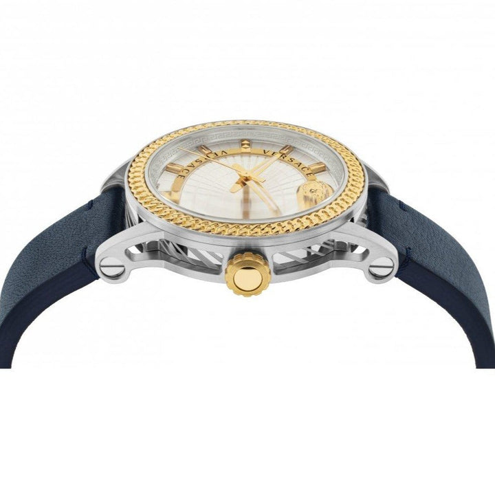 Versace Viamond Quartz White Dial Blue Leather Strap Watch For Men - VEPO00120